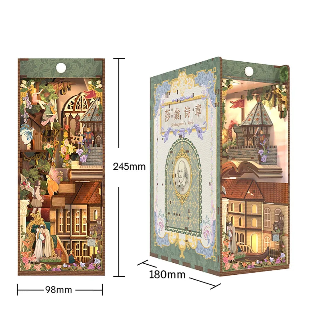 With a Shakespearean narrator wandering through the theater land, this Book Nook becomes an exquisite desk ornament and a theater on paper. Discover the hidden surprises and vivid scenes this Book Nook has to offer, and immerse yourself in the world of Shakespeare.