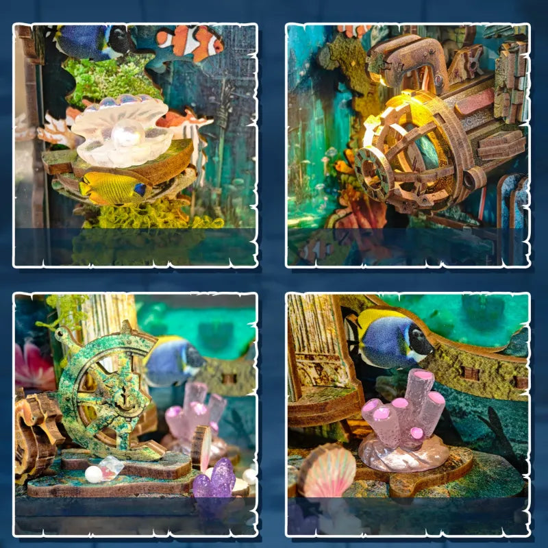 Como una decoración única para estanterías, este diorama atrae todas las miradas. Con el interruptor sensible al tacto, puede cambiar la atmósfera a su gusto. Es el regalo creativo perfecto para todos los que aman el mar, la aventura y la alegría de las manualidades.