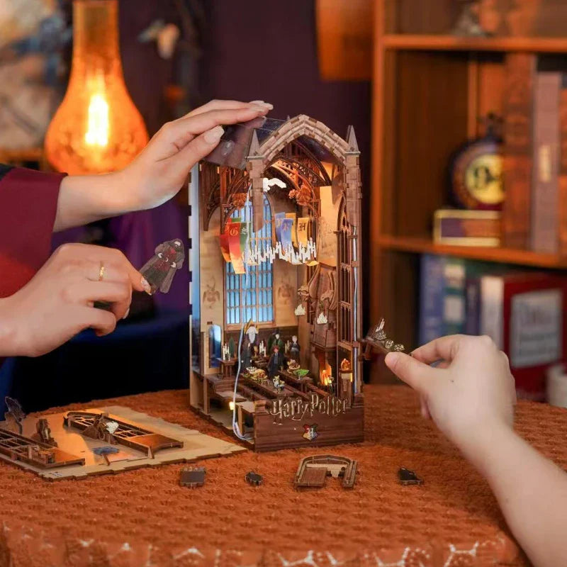 El Book Nook – Harry Potter Magic Auditorium es un kit de construcción DIY detallado que da vida al icónico auditorio de una escuela de magia. Con techo abovedado, largas mesas, luces flotantes y un podio, este Book Nook es un homenaje al mundo de la magia. Gracias a su iluminación ajustable y a una rueda lateral interactiva, este modelo es una experiencia fascinante de decoración y manualidades para todos los aficionados a la fantasía.