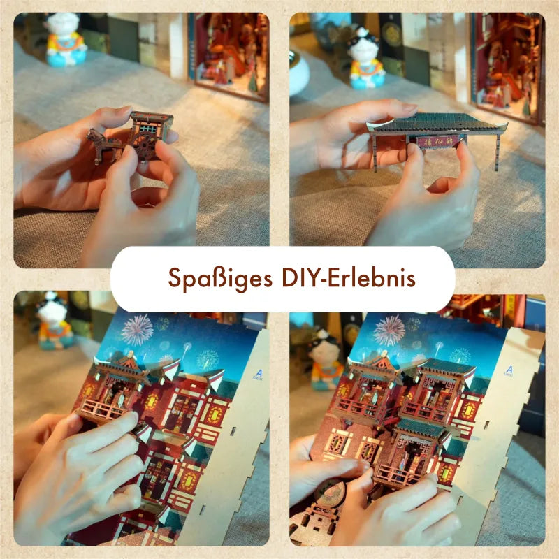 Este Book Nook reproduce con gran detalle las magníficas arquitecturas palaciegas, vestimentas e instrumentos musicales de la dinastía Tang en la antigua China. Le transporta a una época de prosperidad y alegría de vivir, en la que la música y la danza reflejan el esplendor de la era Tang y puede experimentar de cerca la riqueza de la historia china.