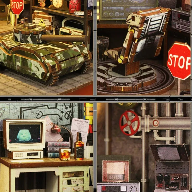 Book Nook - Military Base is the perfect book nook for military fans and strategy gamers. It recreates a precise military base, with detailed buildings and weapon models that immerse you in an accurate and challenging military world. Whether as a display for your books or as military decor, it will brighten your space and give you the unique feeling of a commander.